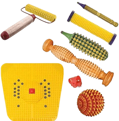 Wooden Foot Roller Acupressure Magnetic Pyramid Power Stress Mat Combo Kit (MultiColour)