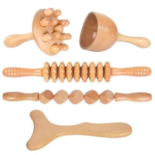 Wooden Gua Sha Lymphatic Drainage Massager, Tool for Body, Manual Massage Scraper for Anti Cellulite and Relieve Muscle Fatigue, Body Gua Sha kit 5pcs
