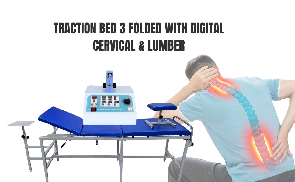3 Folded Traction Bed with Digital Model Traction Machine Lumber & Cervical Both Things Bed & Machine Perfect for Physiotherphy Clinic (1 Year Machine Warranty)