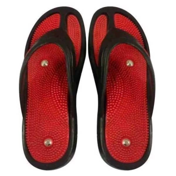 PVC Acupressure Slippers. The acupressure points have been structured in consultation with Doctors. The Magnetic effect helps in controlling blood pressure with light foot massage activating all body parts. Acupressure Footwear with Magnetic effect that stimulates all acupressure points on your feet. The acupressure insole has been contoured in accordance with the shape of the general foot structure and also provides an excellent arch as support. The strategically and scientifically placed magnets helps in blood circulation and helps you re-energize. These slippers or sandals function on the basis of reflexology, a theory that says stimulating a specific point on the sole of the feet which improves overall health as well as wellness by alleviating stress.Acupressure Footwear with Magnetic effect that stimulates all acupressure points on your feet. The acupressure insole has been contoured in accordance with the shape of the general foot structure and also provides an excellent arch as support. The strategically and scientifically placed magnets helps in blood circulation and helps you re-energize. These slippers or sandals function on the basis of reflexology, a theory that says stimulating a specific point on the sole of the feet which improves overall health as well as wellness by alleviating stress.
