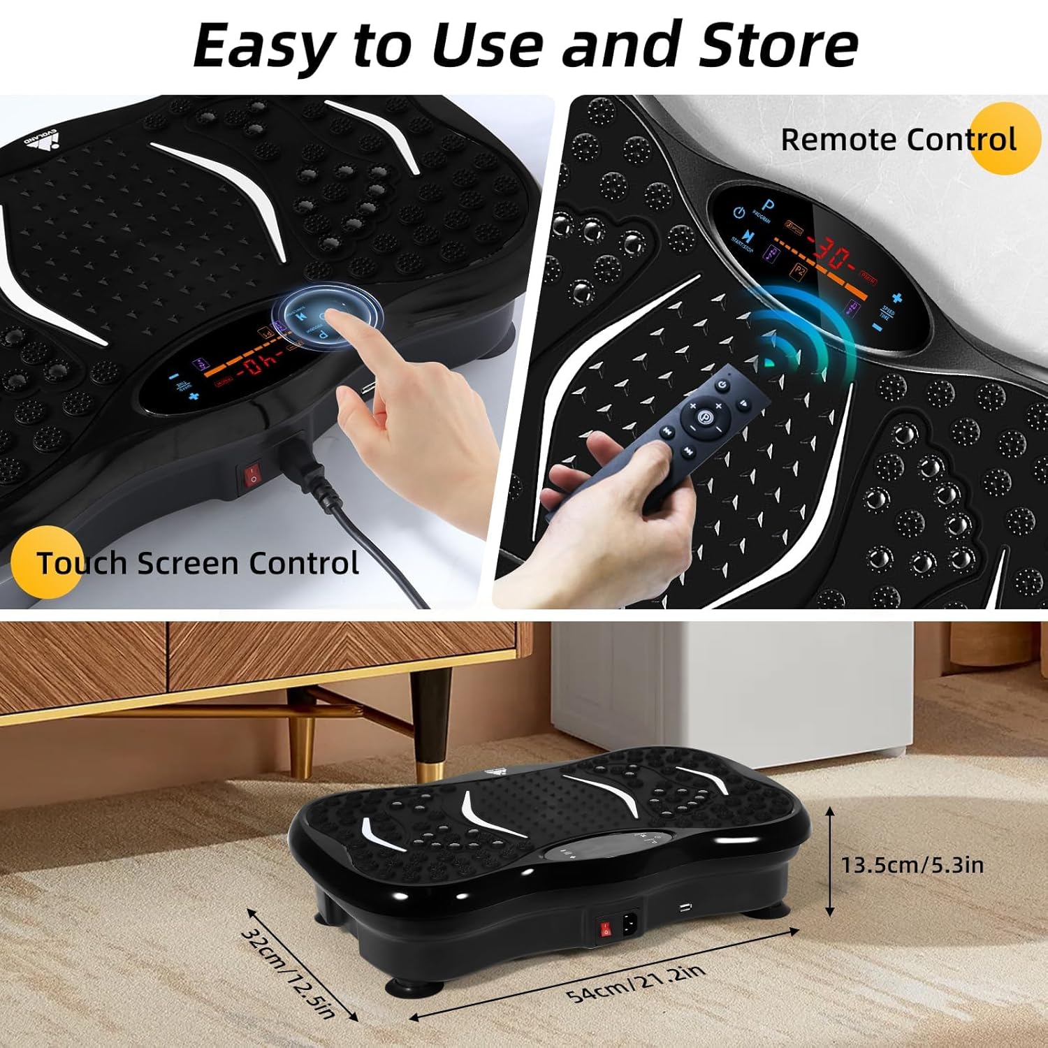 ✅RICH FUNCTIONAL & HIGH EFFICIENT& REMOTE CONTROL: Adjustable vibration speed (1 to 120), with 2 resistance workout bands, can exercise upper body and lower body at the same time. Offering variety of exercise modes, allow you to try different vibration exercises, With this workout machine, you can have your routine exercise done in only 10 minutes everyday. What you’ll get is a better shape and enhanced metabolism, increased bone mineral density, relieve and reduce stress levels.