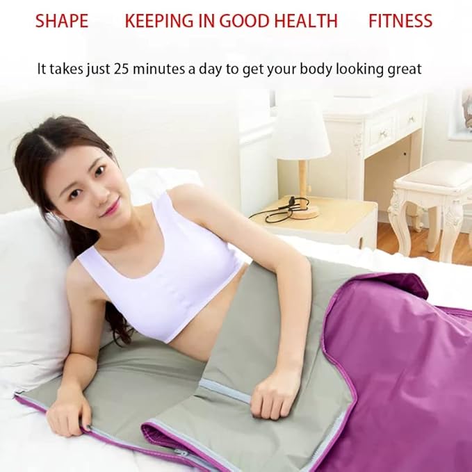 pecification: Item Type: Infrared Sauna Blanket Material: OxCloth + ABS Color: Purple Voltage: 110V/220V Controller Battery: 1 * CR2025 Blanket Size: Approx. 180 * 80cm / 70.9 * 31.5inch Package List: 1 * Main hine 1 * Blanket 1 * Controller 1 * Plug 1 * User Manual 1 * Fuse Wire Note: 1. The real color of the item may be slightly different from the images shown on the website caused by many factors such as your monitor brightness and brightness of the light. 2. Please allow 13 cm error due to manual measurement. Please make sure you do not mind before you bid.