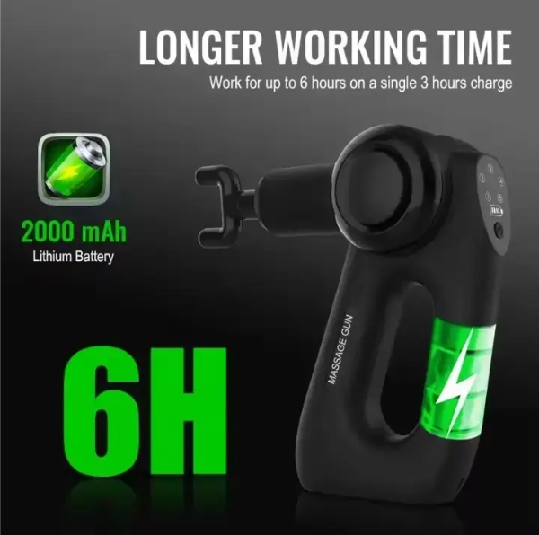 The Pro Massage Gun features a high-capacity rechargeable lithium-ion battery, providing up to 6 hours of continuous use on a single charge. This long-lasting battery life ensures you can enjoy uninterrupted massage sessions without the need for frequent recharging, making it a convenient tool for daily use.