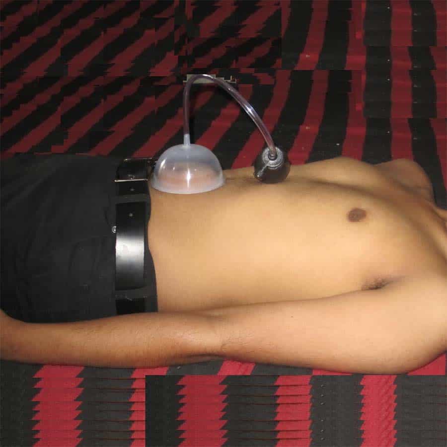 The patient should lie down on his/her back on a flat, hard surface with both legs touching and stretched. The arms should also be stretched and be resting on the sides of the body. The patient himself/herself or another person should then place the solar setter directly over the navel. To place the solar setter on the navel, press deeply the solar setter’s top closed, broader end with the fingers, thus allowing the air to escape out from the device and then gently put it on the abdomen in such a way that the center of the bowl is directly over the navel. The solar pump will now stay put in its place on its own and will gradually bring the displaced solar plexus in the center of the abdomen due to its vacuum action. As the displaced solar plexus keeps moving towards the center of the abdomen, the pressed rubber device will keep opening out gradually. Once the solar plexus is fully corrected, the solar setter will fall off on its own. If the solar setter does not fall off on its own within half an hour, it is unlikely that solar plexus will get corrected in one session and the exercise should be terminated for the day. To remove the solar setter, press one side of the abdomen with a finger, thus allowing air to rush into the device that will then fall off.