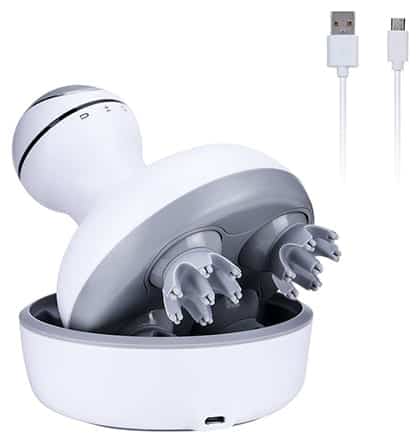 PORTABLE & REACHRAGABLE: The electric hair scalp massager is powered by rechargeable lithium-ion battery, so no need to plug in while in use giving you flexibility to enjoy a perfect massage anywhere without annoying wire. The massage tool comes with a charging base and a USB charging cable and it lasts for 7-10 massages on one full charge. It’s compact, cordless portable design allows you to massage and relieve tension from your office, home or even your car. LEISURE WHEN YOU NEED IT..